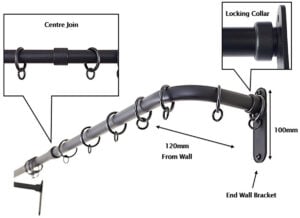 French Curtain Pole Set including integral brackets and rings. This style of pole does not require any finials and ensures a stylish and refined look. Each pole comes with a ring allowance equivalent to 1 ring per 10cm. Cut to length and use centre wall support bracket. Our French Curtain Poles should be used with pairs of curtains and are not suitable for a single curtain as the rings will not pass the centre joiner and wall support bracket. Maximum weight 10 kilos per metre.